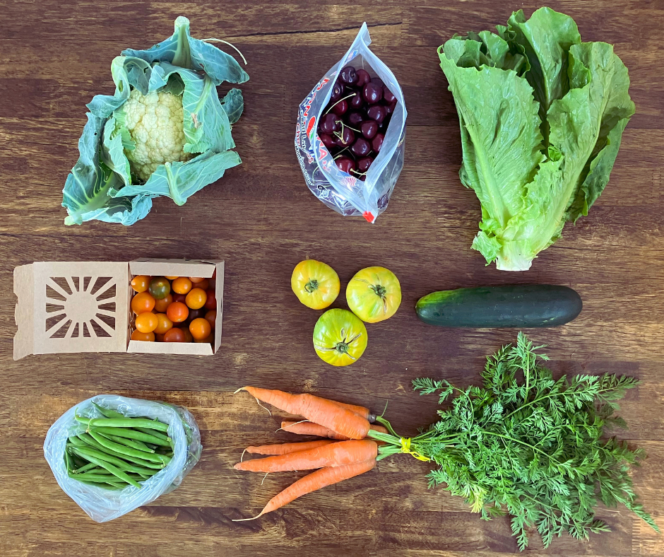 You can expect a variety of fruits, veggies and herbs in your share each week, all organically grown and freshly harvested. Because everything is grown locally, what’s in your share during any given week depends on where we’re at in the season and what the weather looks like that week.